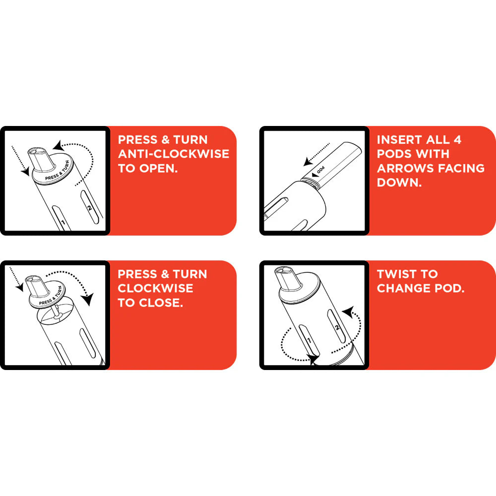 - 3. Easily switch between pods by rotating the mouthpiece.